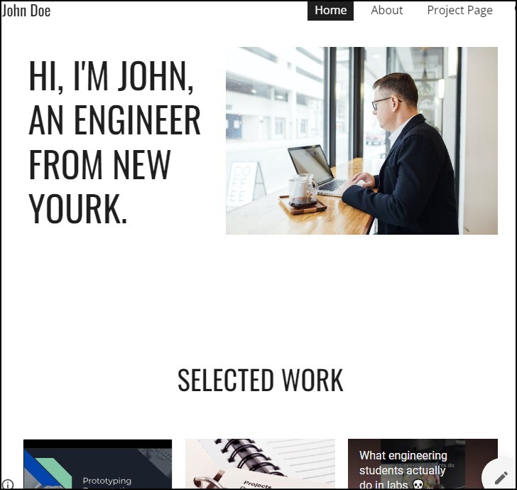 Free Google Sites website template for a "Portfolio"